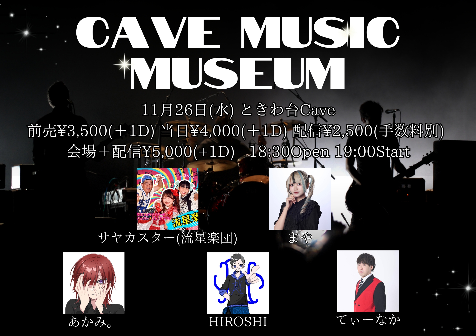 時間:開場18:00 / 開演18:30料金:前売¥3,500(+1D) / 当日¥4,000(+1D)会場+配信チケット:¥5,000(+1D)配信:¥2,500(手数料別)